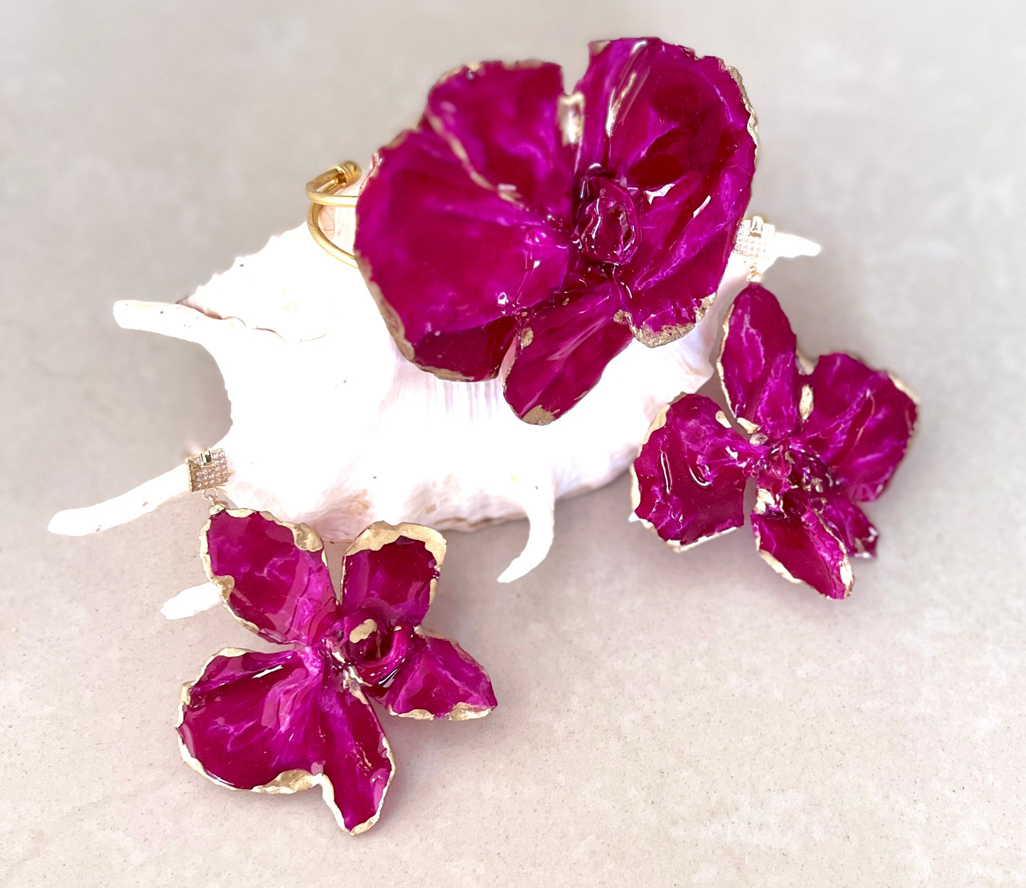 / Set cu orhidee ciclamen, pictate cu foita aur